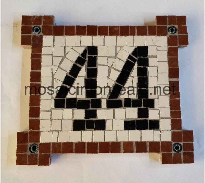 Realizzato con tessere di marmo prelucidate di color rosso fegato,botticino e nero assoluto.