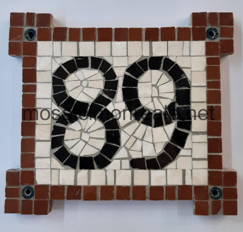 Realizzato con tessere di marmo prelucidate di color rosso fegato,botticino e nero assoluto.