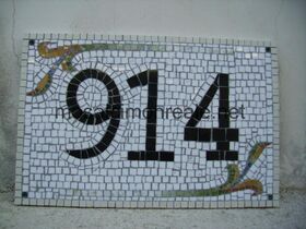Numero civico composto da tre numeri con decorazione floreale.
