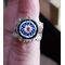 Anello ottone argentato, castone: 12 millimetri   Anello regolabile.