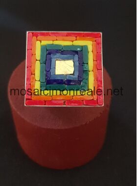 Anello ottone argentato, castone: 25x25 millimetri Anello regolabile.