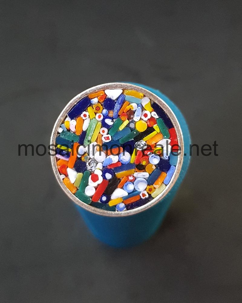 Galvanizzato e anallergico. All'interno: smalti filati di diverse dimensioni. Colori: celeste, bianco, giallo