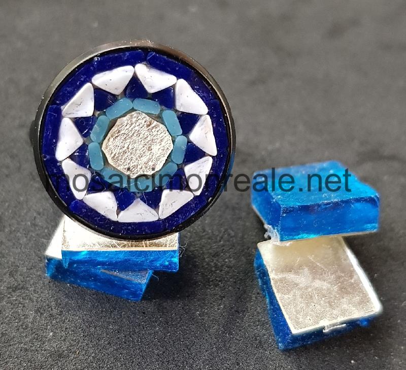 All'interno: smalti filati di diverse dimensioni. Colori: blu, bianco, celeste, argento