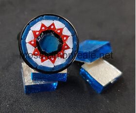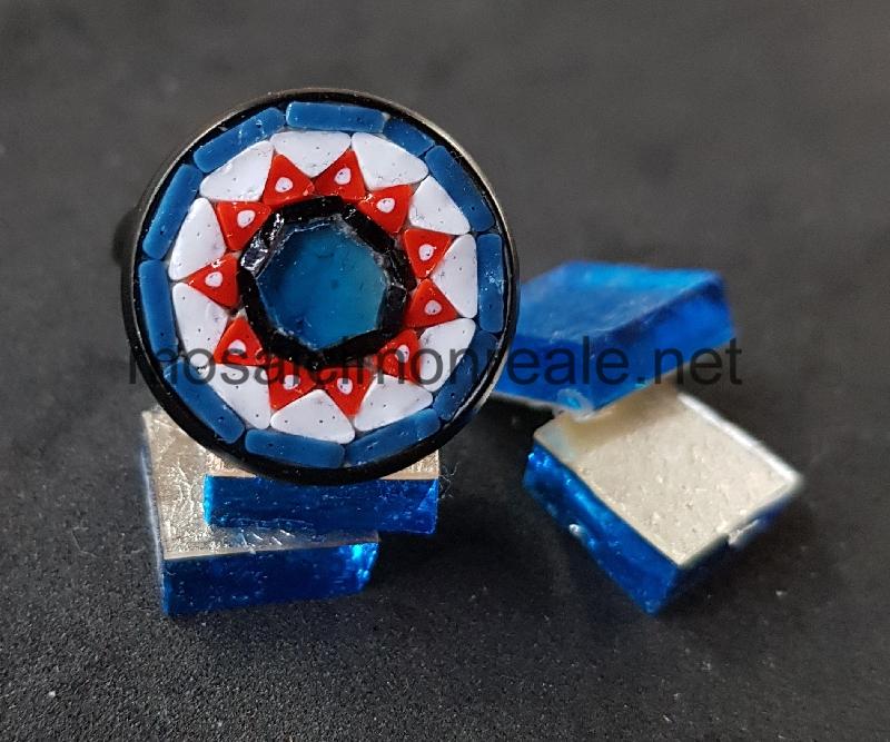 All'interno: smalti filati di diverse dimensioni. Colori: blu, bianco, celeste, argento