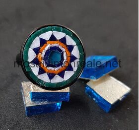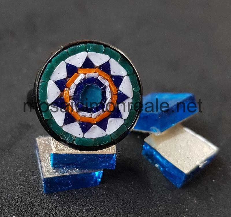 All'interno: smalti filati di diverse dimensioni. Colori: blu, bianco, celeste, argento