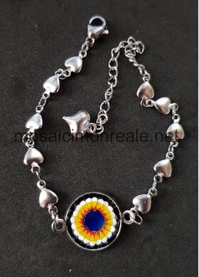 Galvanizzato e anallergico. All'interno: smalti filati di diverse dimensioni. Colori: rosso, nero, celeste, giallo