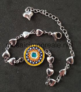 Galvanizzato e anallergico. All'interno: smalti filati di diverse dimensioni. Colori: rosso, nero, celeste, giallo