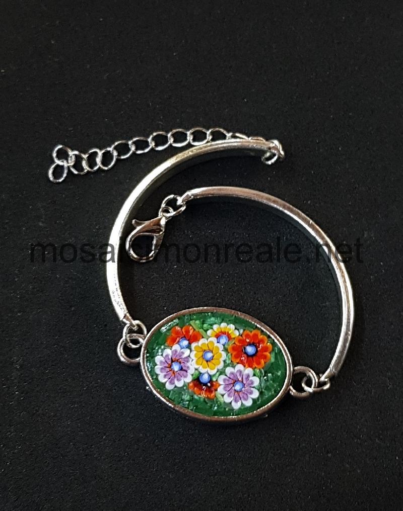 Bracciale ottone argentato, castone: 2 x 2,6 cm  Chiusura regolabile.