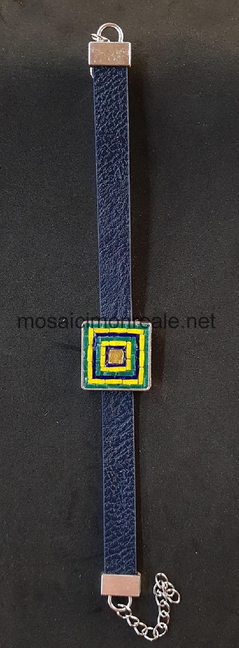 Bracciale ottone argentato e cinturino in finta pelle, castone: 2,2 x 2,2 centimetri.  Chiusura regolabile. Lunghezza bracciale: 17, 5 centimetri