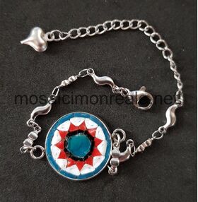 All'interno: smalti filati di diverse dimensioni. Colori: blu, celeste, oro