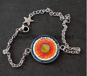 Galvanizzato e anallergico. All'interno: smalti filati di diverse dimensioni. Colori: blu, giallo, bianco, rosso, celeste