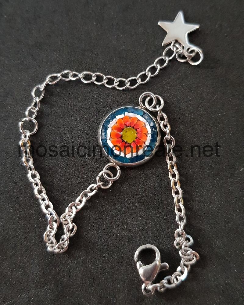 Galvanizzato e anallergico. All'interno: smalti filati di diverse dimensioni. Colori: blu, giallo, bianco, rosso, celeste