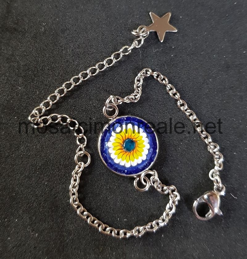 Galvanizzato e anallergico. All'interno: smalti filati di diverse dimensioni. Colori: blu, bianco, giallo, celeste
