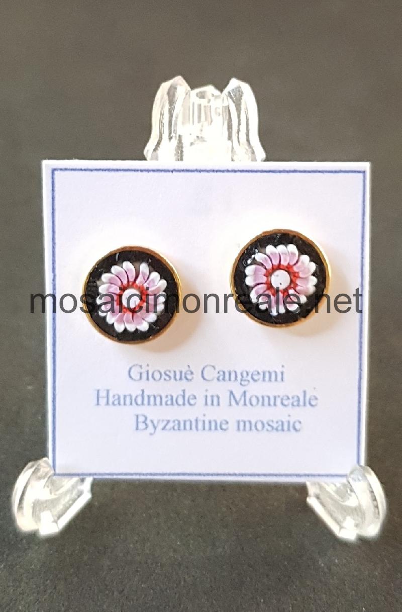 Orecchini ottone dorato, castone: 9 millimetri.  Chiusura con ago e farfallina.