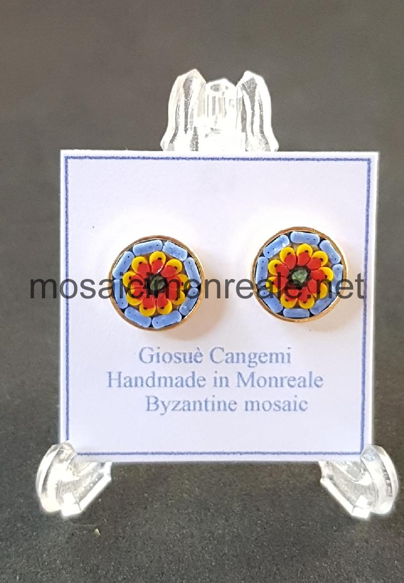 Orecchini ottone dorato, castone: 9 millimetri.  Chiusura con ago e farfallina.