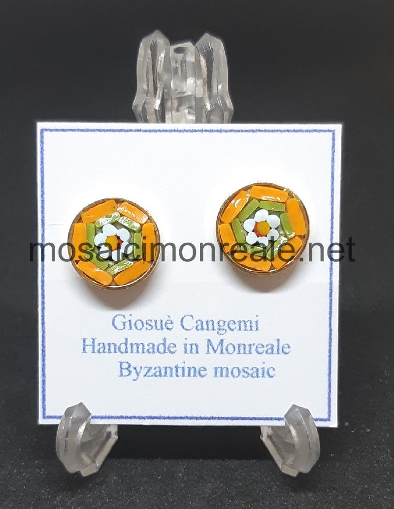 Orecchini ottone dorato, castone: 9 millimetri.  Chiusura con ago e farfallina.