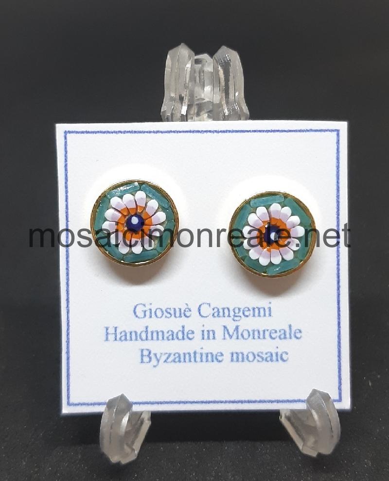 Orecchini ottone dorato, castone: 9 millimetri.  Chiusura con ago e farfallina.
