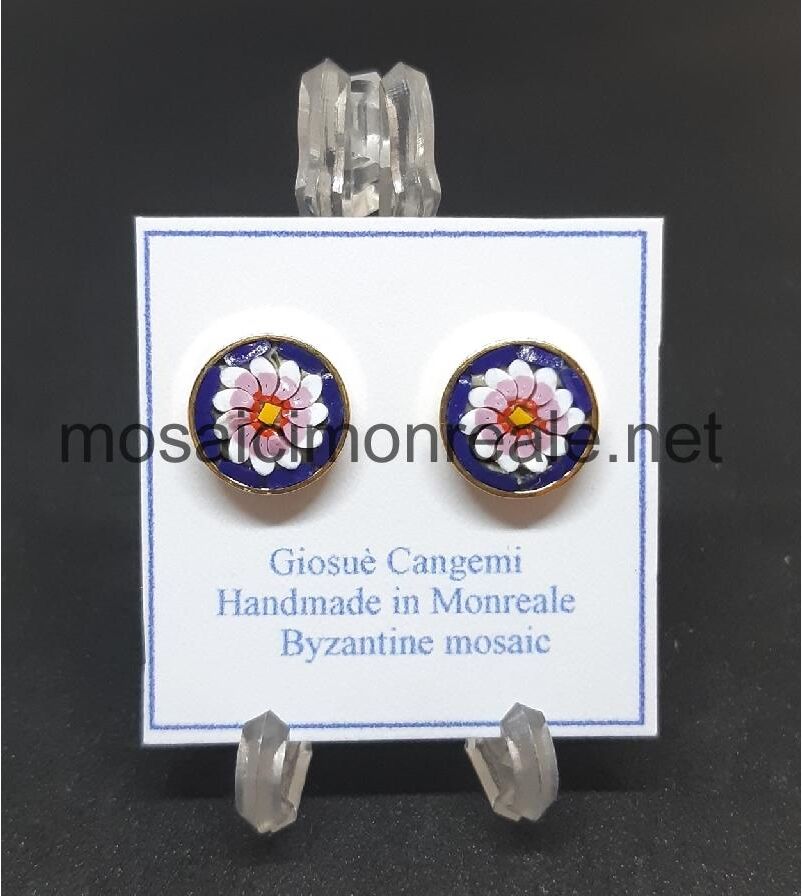 Orecchini ottone dorato, castone: 9 millimetri. Chiusura con ago e farfallina.