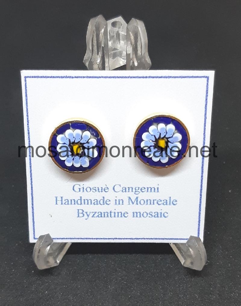 Orecchini ottone dorato, castone: 9 millimetri.  Chiusura con ago e farfallina.