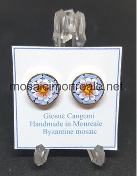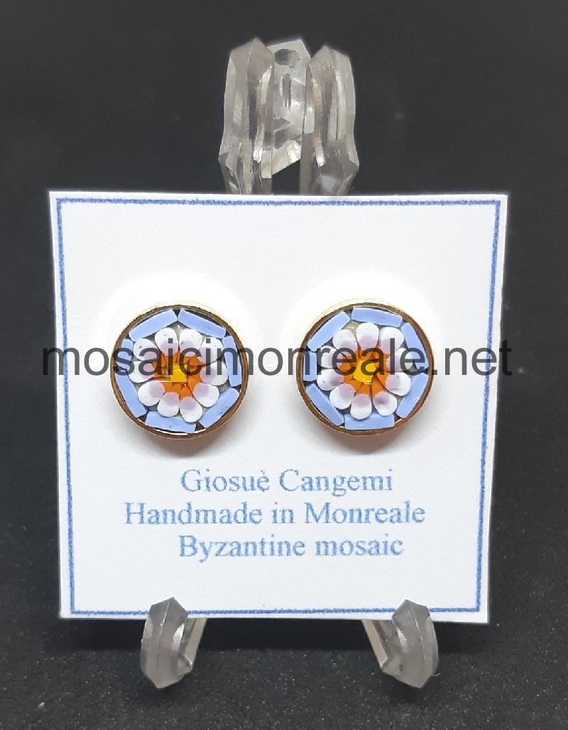 Orecchini ottone dorato, castone: 9 millimetri.  Chiusura con ago e farfallina.