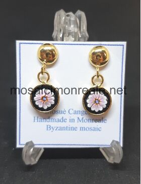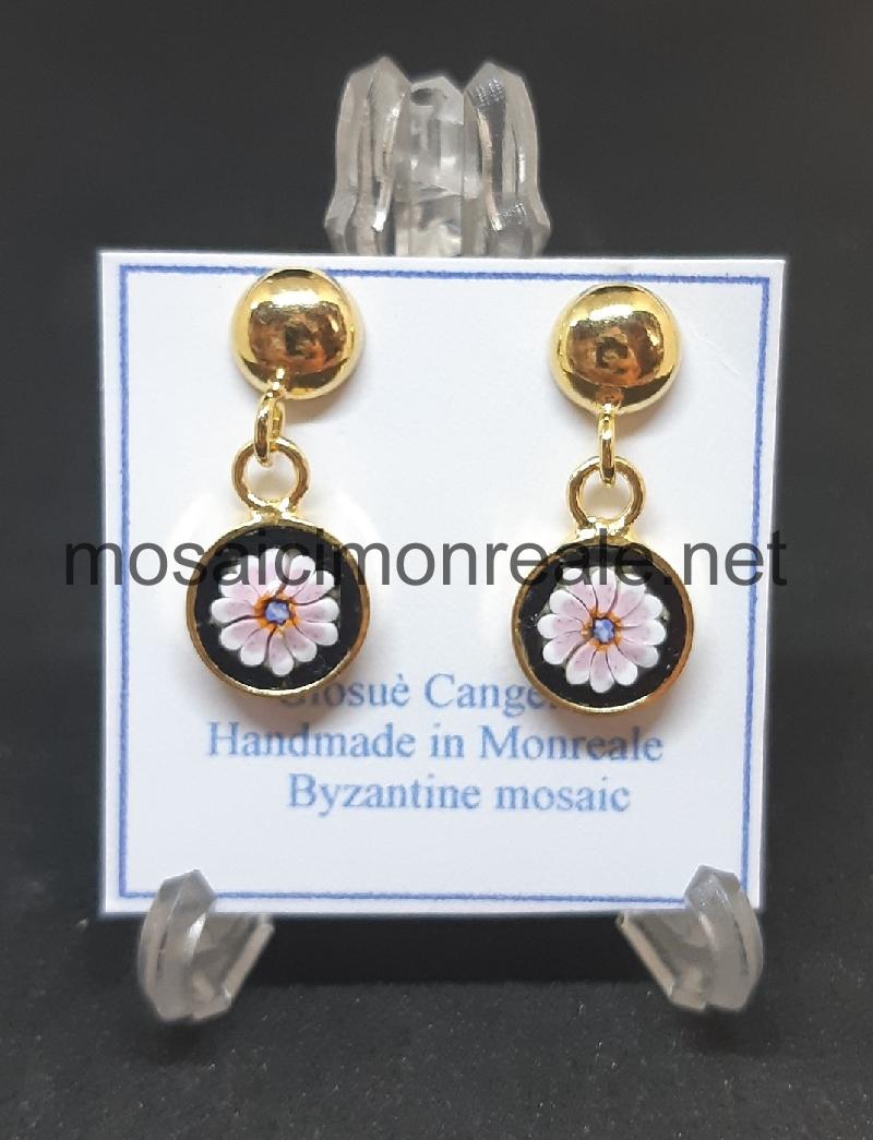 Orecchini ottone dorato, castone: 8 millimetri.  Chiusura con ago e farfallina.