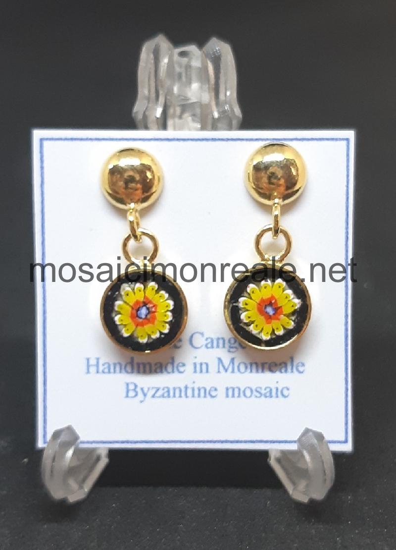 Orecchini ottone dorato, castone: 8 millimetri. Chiusura con ago e farfallina.