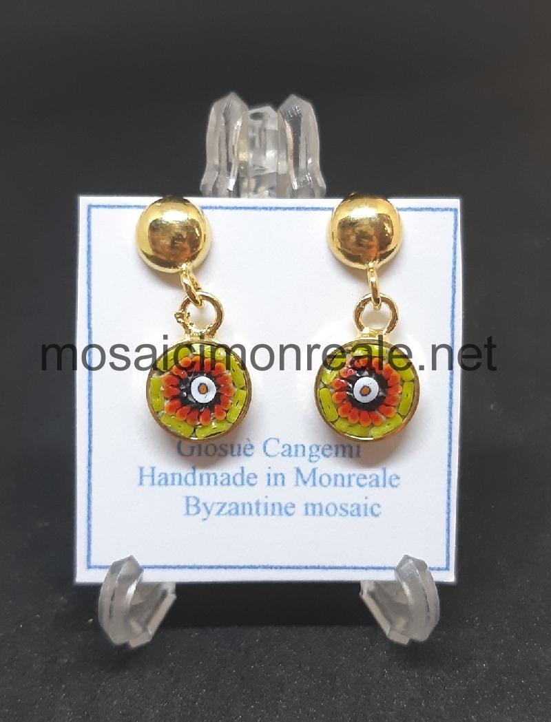 Orecchini ottone dorato, castone: 8 millimetri.  Chiusura con ago e farfallina.