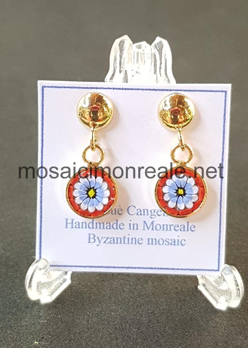 Orecchini ottone dorato, castone: 8 millimetri.  Chiusura con ago e farfallina.