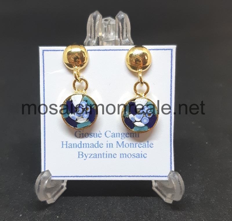 Orecchini ottone dorato, castone: 8 millimetri.  Chiusura con ago e farfallina.