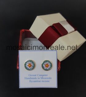Orecchini ottone dorato, castone: 8 millimetri.  Chiusura con ago e farfallina.