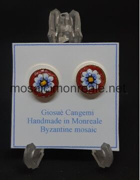 Orecchini ottone dorato, castone: 8 millimetri.  Chiusura con ago e farfallina.