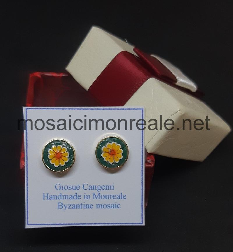 Orecchini ottone dorato, castone: 8 millimetri.  Chiusura con ago e farfallina.