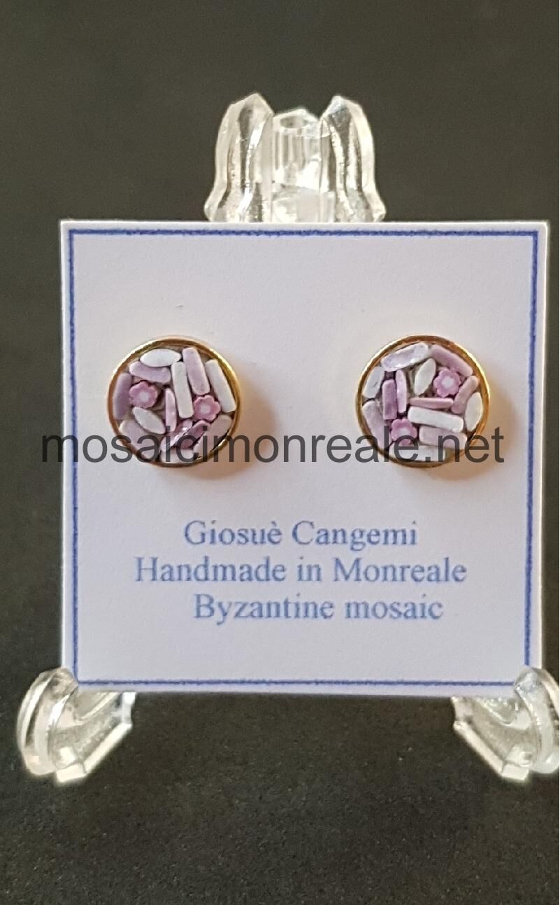 Orecchini ottone dorato, castone: 8 millimetri.  Chiusura con ago e farfallina.
