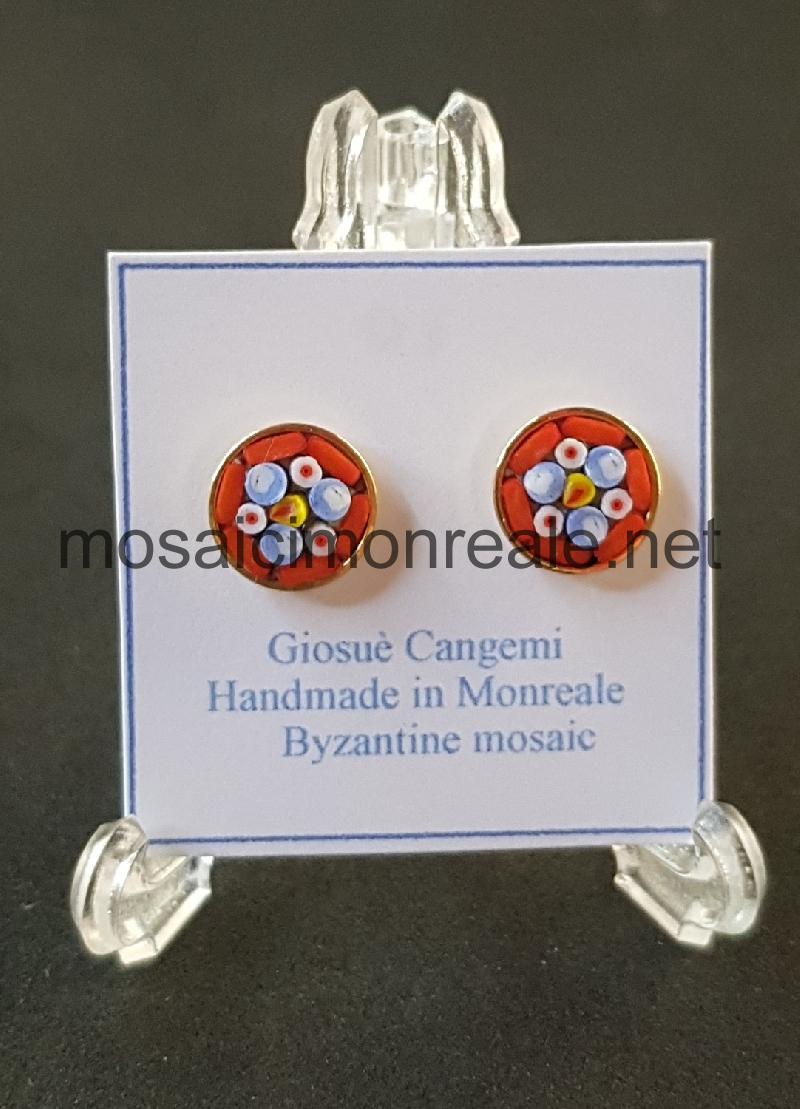 Orecchini ottone dorato, castone: 8 millimetri.  Chiusura con ago e farfallina.