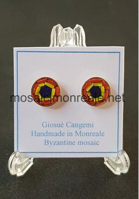 Orecchini ottone dorato, castone: 8 millimetri.  Chiusura con ago e farfallina.