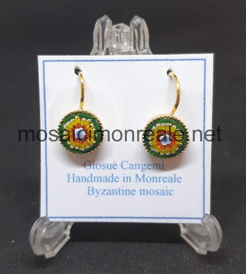 Orecchini ottone dorato, castone: 8 millimetri. Chiusura con a monachella.