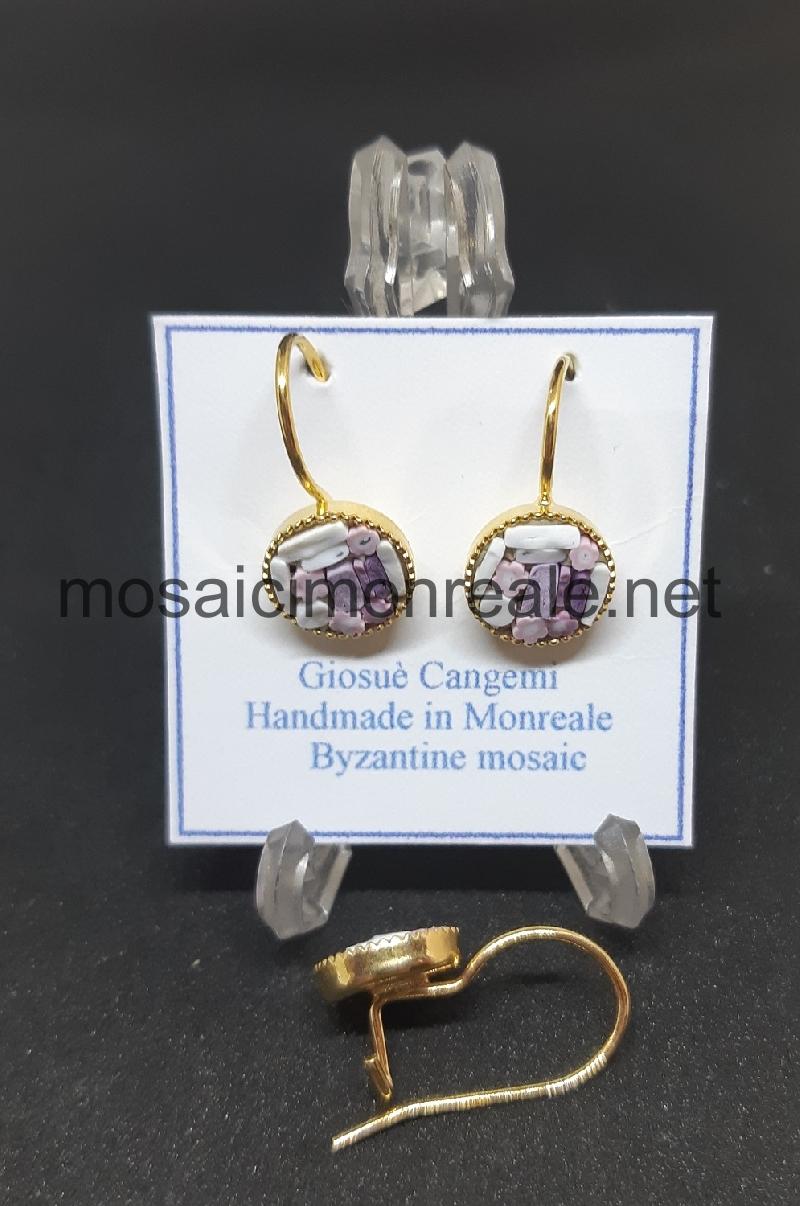 Orecchini ottone dorato, castone: 8 millimetri.  Chiusura con a monachella.