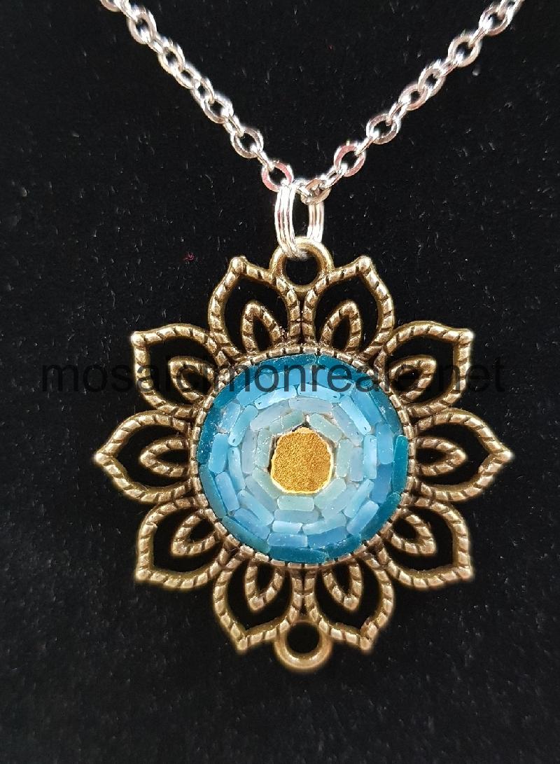All'interno: smalti filati di diverse dimensioni e ori di venezia. Colori:celeste , oro