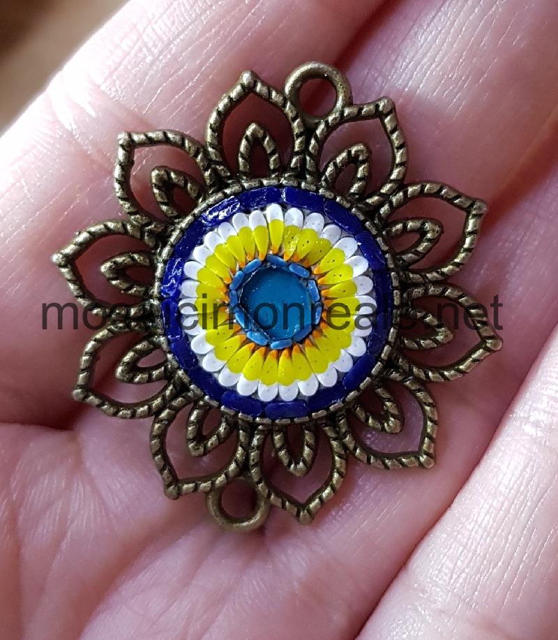All'interno: smalti filati di diverse dimensioni e ori di venezia. Colori:celeste , oro