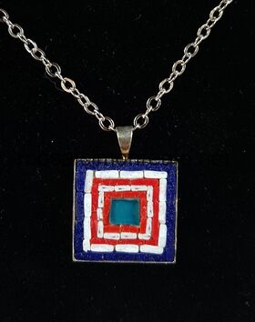 All'interno: smalti filati di diverse dimensioni. Colori: blu, bianco, rosso, celeste