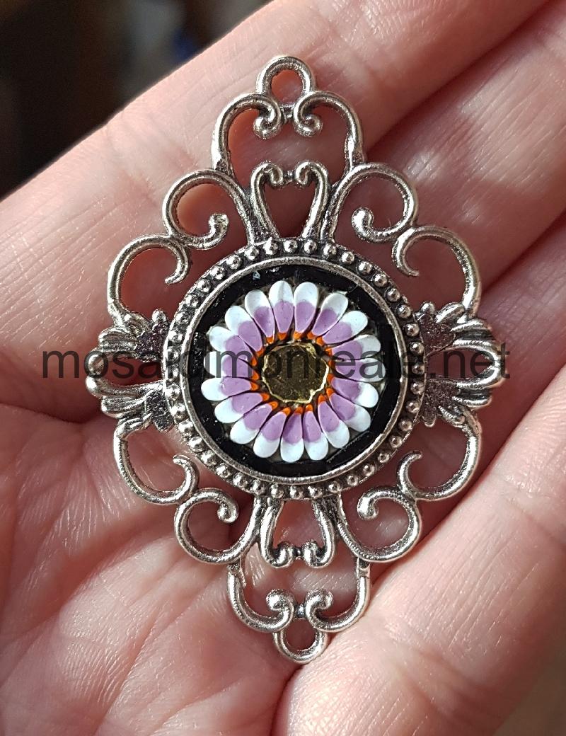 Pendente in ottone argentato, castone: 18 millimetri.   Galvanizzato e anallergico.