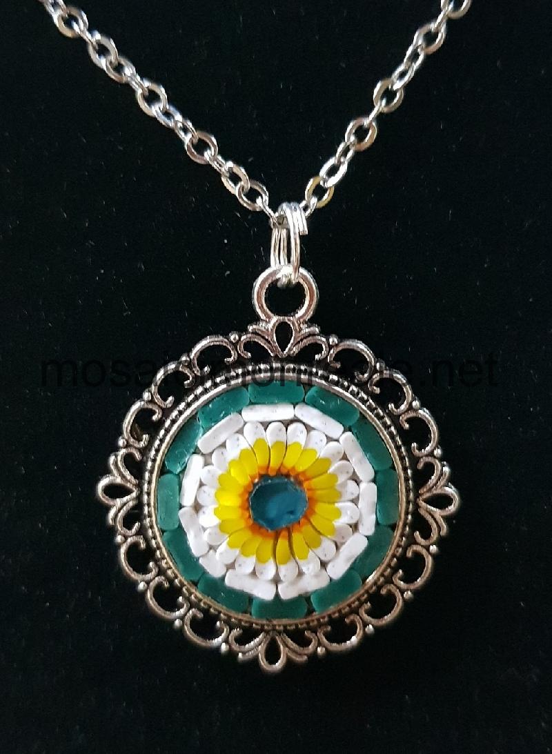 All'interno: smalti filati di diverse dimensioni. Colori: verde, bianco, giallo, celeste