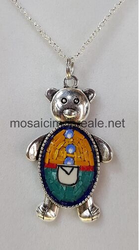 All'interno: smalti filati di diverse dimensioni. Colori: verde, bianco, rosa, celeste, giallo, blu, rosso