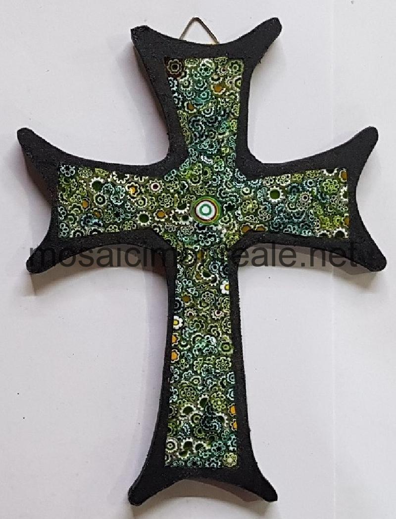 Mosaico realizzato con pasta di vetro. Supporto: legno traforato . Misure: 11,5 X 15 cm
