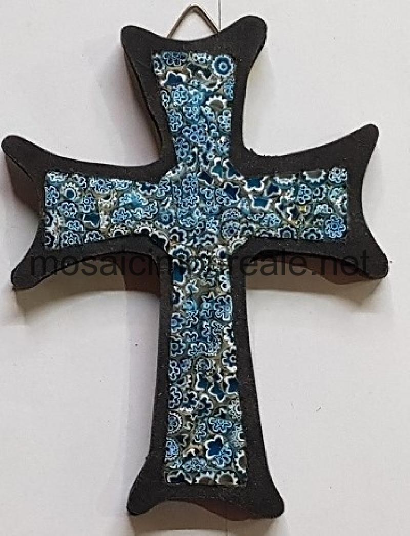 Mosaico realizzato con pasta di vetro. Supporto: legno intarsiato. Misure: 8 X 10 cm